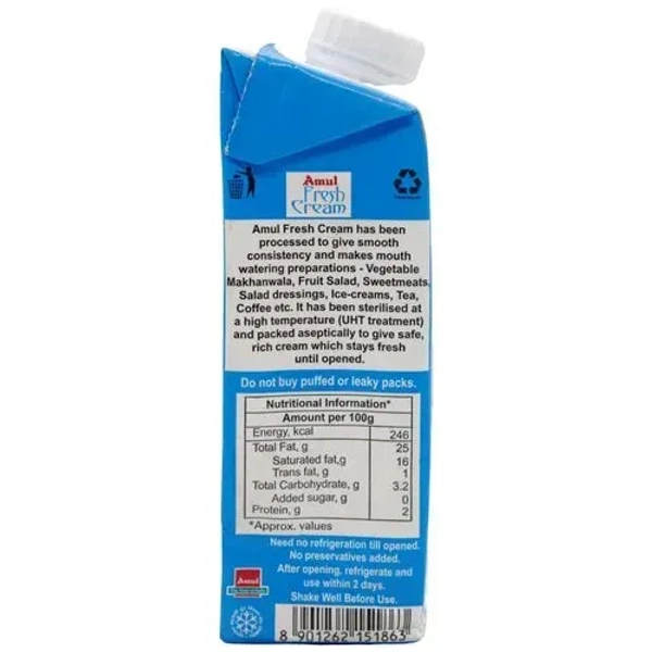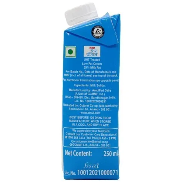 Amul Fresh Cream - 25% Milk Fat Low Fat, 250 ml