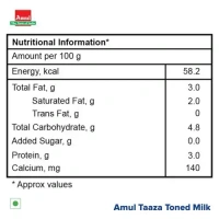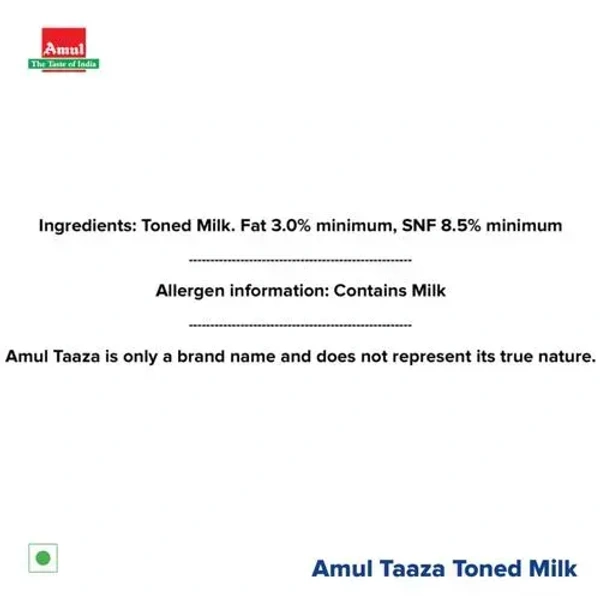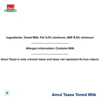 Amul Taaza Homogenised Toned Milk, 1 L Carton