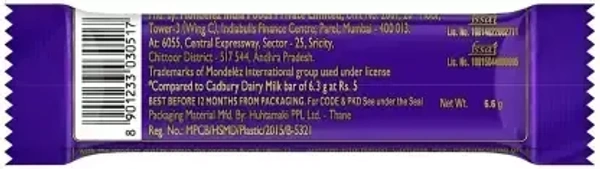 Cadbury Dairy Milk Chocolate Bar, 6.6g