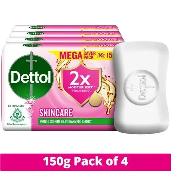 Dettol Skincare Moisturising Beauty Bathing Soap Bar With 2x Moisturisers, Glycerine & Argan Oil, 150 g (Pack of 4)