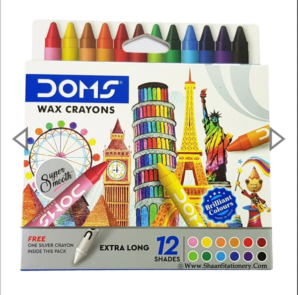 Doms 12 Shades Extra Long Wax Crayons | Free Silver Crayon Inside