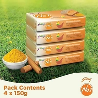 - Contains: 4 units of Godrej No. 1 Sandal and Turmeric Bath Soap (150g each)