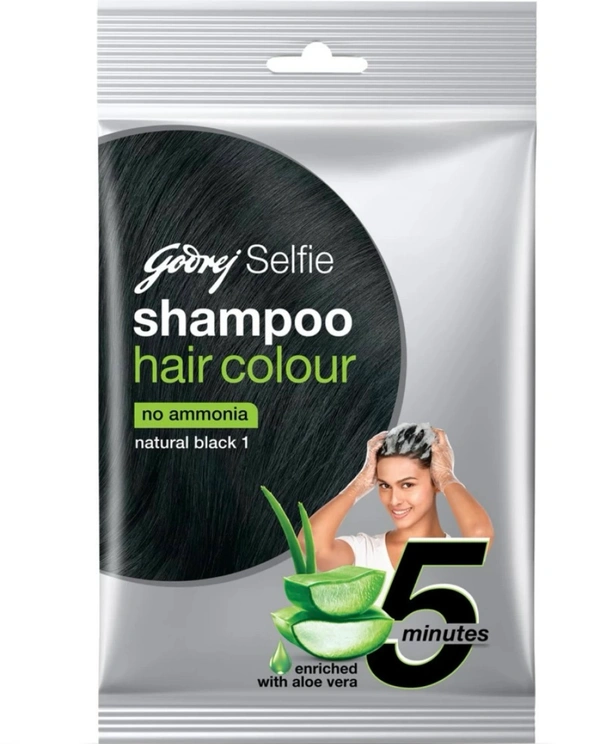 Godrej Selfie Shampoo Hair Colour, Natural Black 1.00