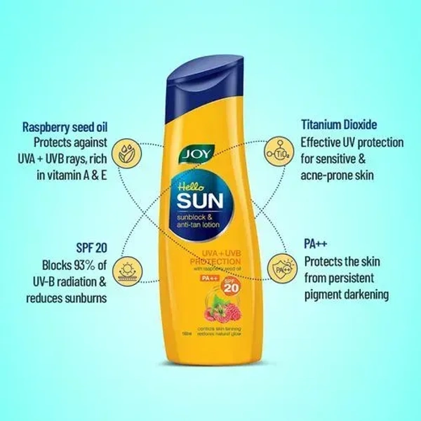 Joy Hello Sun SPF 20 UVA + UVB Protection Sunblock & Anti-Tan Lotion 300 ml