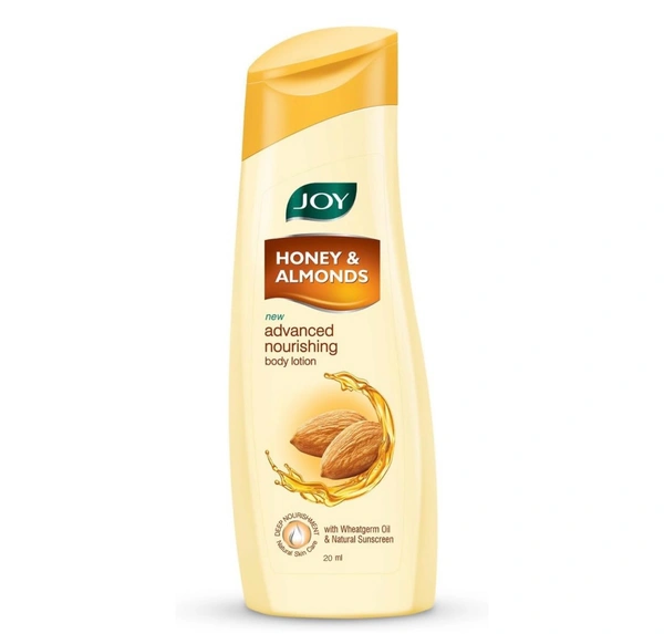 Joy Honey & Almonds Advanced Nourishing Body Lotion (20ml) | Non Sticky Body Moisturizer With Vitamin E & Natural Sunscreen | Summer Body Lotion For Dry Skin