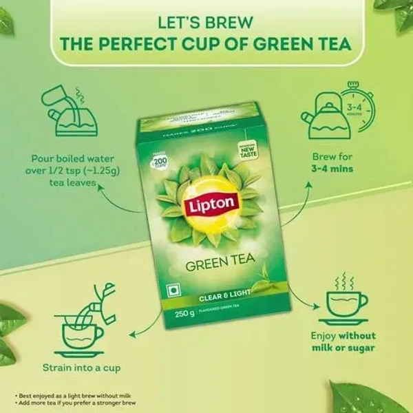 It's not just a cup of tea, it's therapy - One Sip at a Time. Lipton Green Tea is not just a regular cup of chai, we believe it's therapy for your body. Wake up to a morning cup of hot Lipton green tea and feel how it leaves you feeling light and active. Awaken your senses - one sip at a time. Lipton Green Tea Bags in Honey Lemon Flavor have this goodness. Choose Lipton Green Tea Honey Lemon as your go-to beverage during the day. Buy Now! Magic of Green TeaGreen tea is produced when freshly plucked leaves are heated, rolled/cut and then dried. The catechins in the fresh leaves are preserved during the green tea process, making green tea rich in catechins. Also, green tea is typically drunk without milk and sugar and hence gives zero calories as compared to the ordinary chai made with milk and sugar. Available in a Range of FlavorsLipton offers a range of different flavours to ensure that you are offered variety and enjoyment while drinking tea. Lipton flavours some of its teas with added natural flavours and no artificial flavours are used. You may try Lipton Green tea in Pure & Light (unflavored), Tulsi Natura, Honey & Lemon and Lemon Zest flavours as well, available in pack sizes of 10s and 25s Teabags. Next best to WaterBrewed, Unsweetened Lipton Green Tea being 99. 5% water is a great way to meet your daily required fluid intake. Staying hydrated is essential to ensure bodily functions are carried out efficiently.