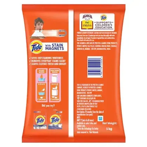- Tide Double Power has STAIN MAGNETS which remove the toughest of stains to give you stainless whites